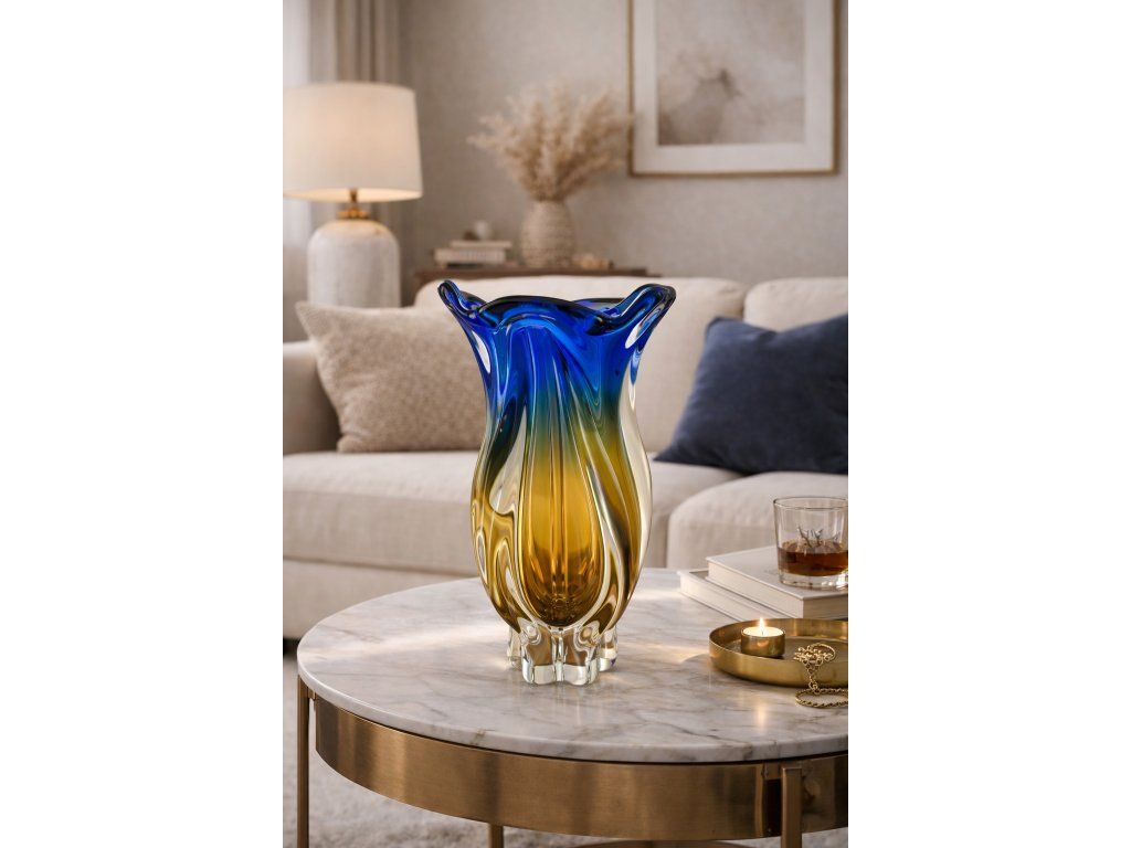 Nádherná váza z hutního skla v krásné barevné kombinaci. Autor návrhu Josef Hospodka, sklárna Chřibská, 60. léta 20. století. Výška 26 cm. Top stav.