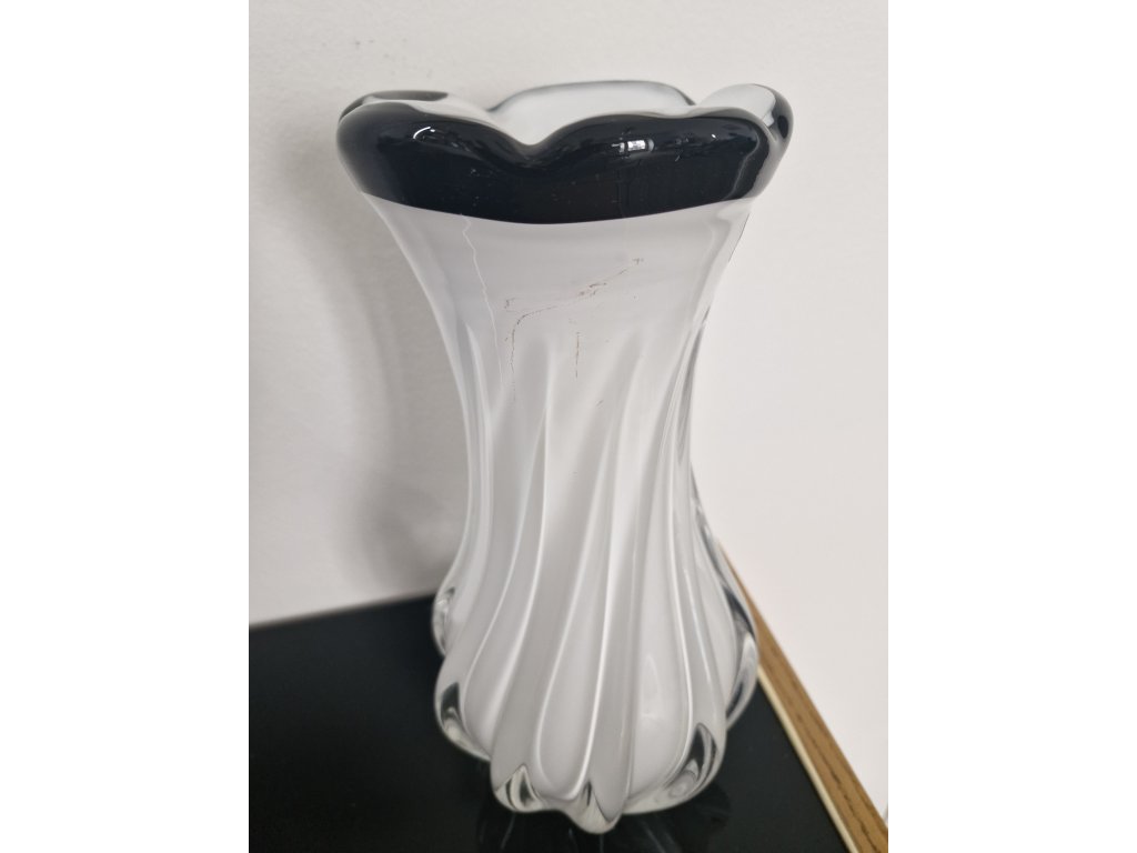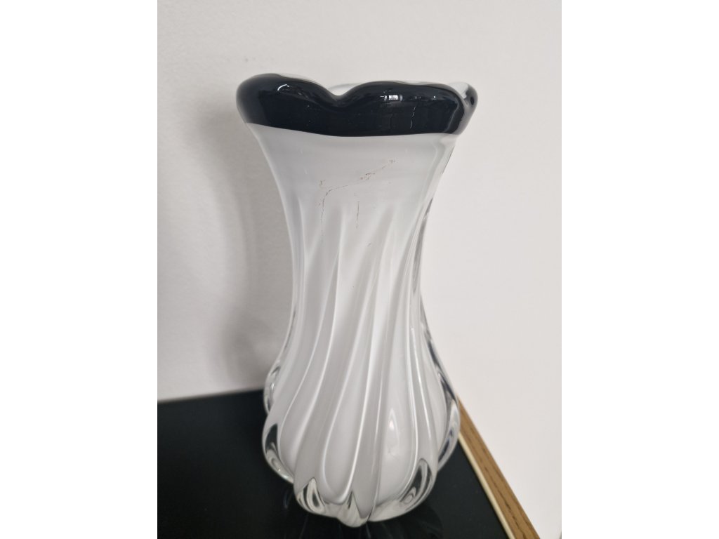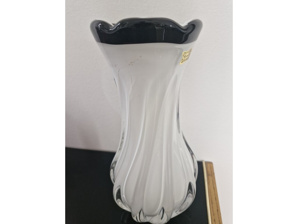 Nádherná váza z hutního skla s opalovým jádrem z produkce sklárny Egermann, Nový Bor, 90. léta 20. století. Výška 28 cm. S původní nálepkou sklárny. Top stav nového zboží.