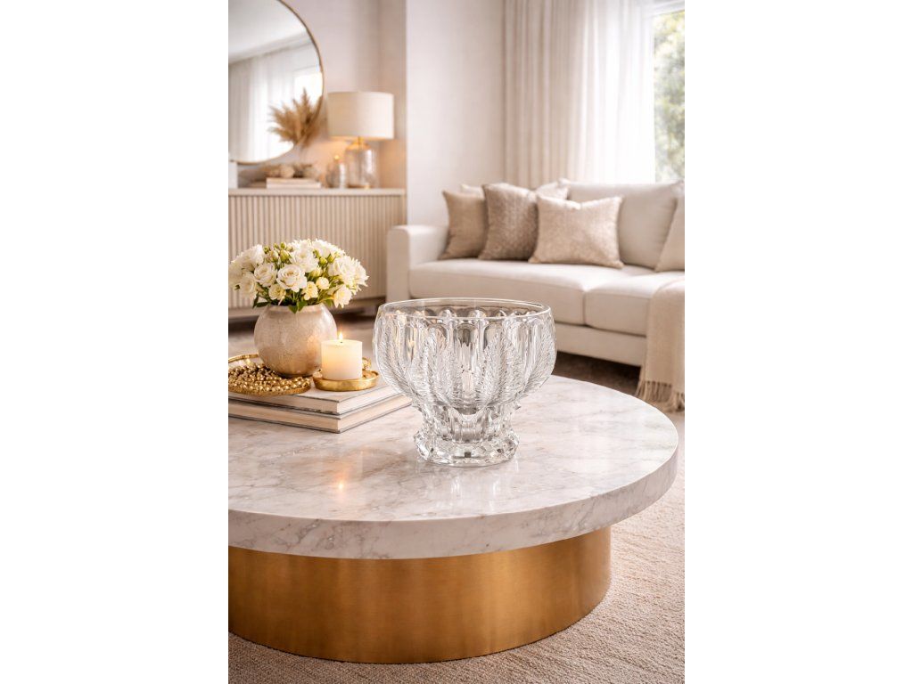 Nádherná, masivní váza z lisovaného křišťálového skla dle autorského návrhu Dagmar Kudrové, Poděbradské sklárny, 70. léta 20. století. Výška 16 cm. Top stav.