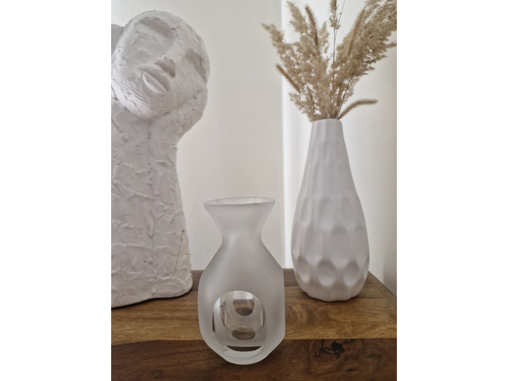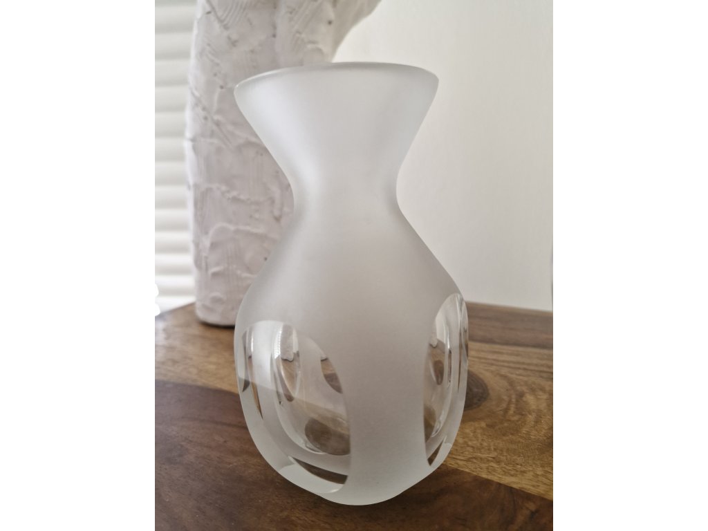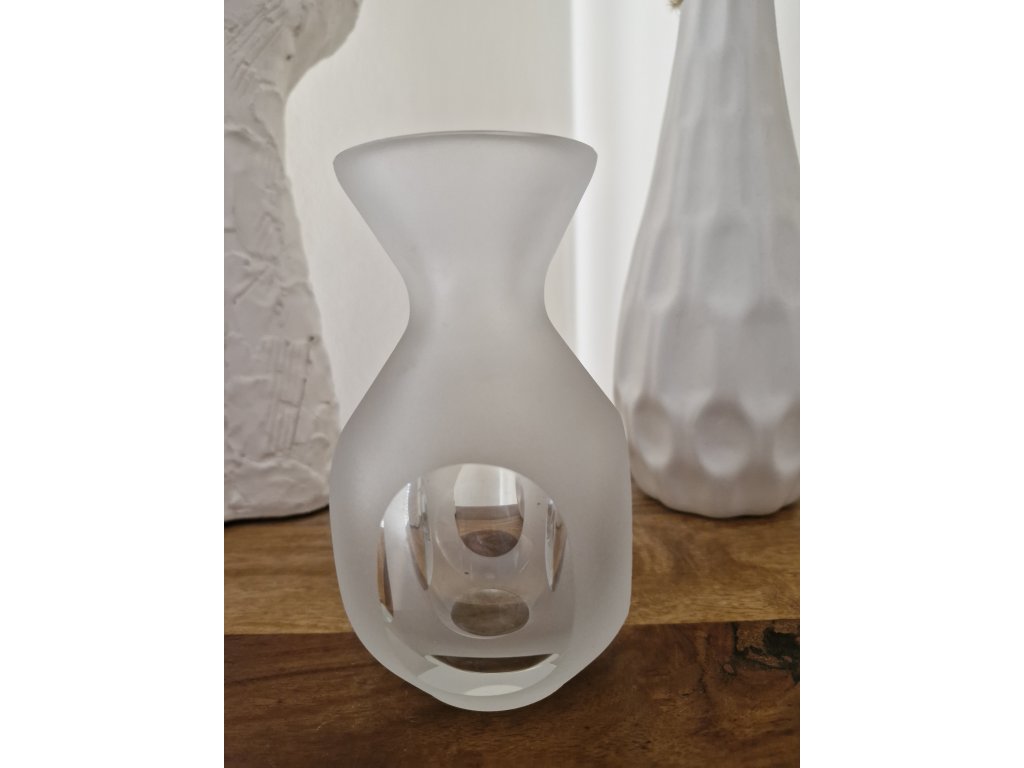 Krásná matovaná váza z broušeného skla dle autorského návrhu Václava Hanuše, Jablonecké sklárny, 70. léta 20. století. Výška 14,5 cm. Top stav.