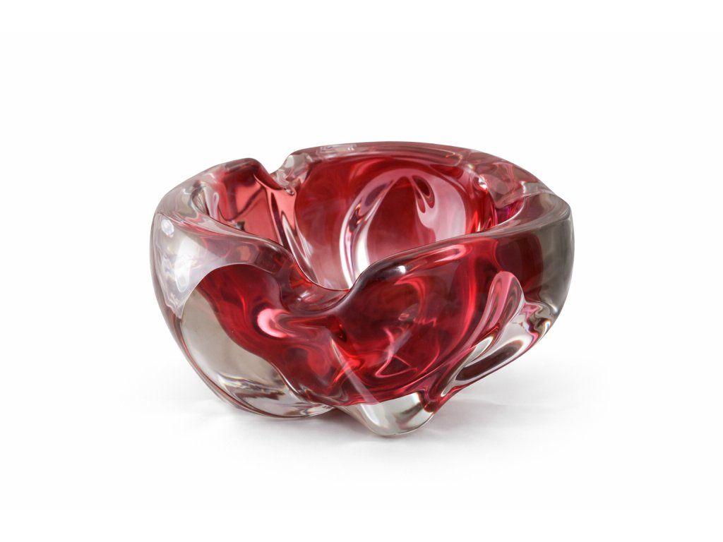 Krásná menší mísa z hutního skla dle autorského návrhu Josefa Hospodky, skloárna Chřibská, 60. léta 20. století. Výška 10 cm, průměr 16 cm. 100% TOP stav.