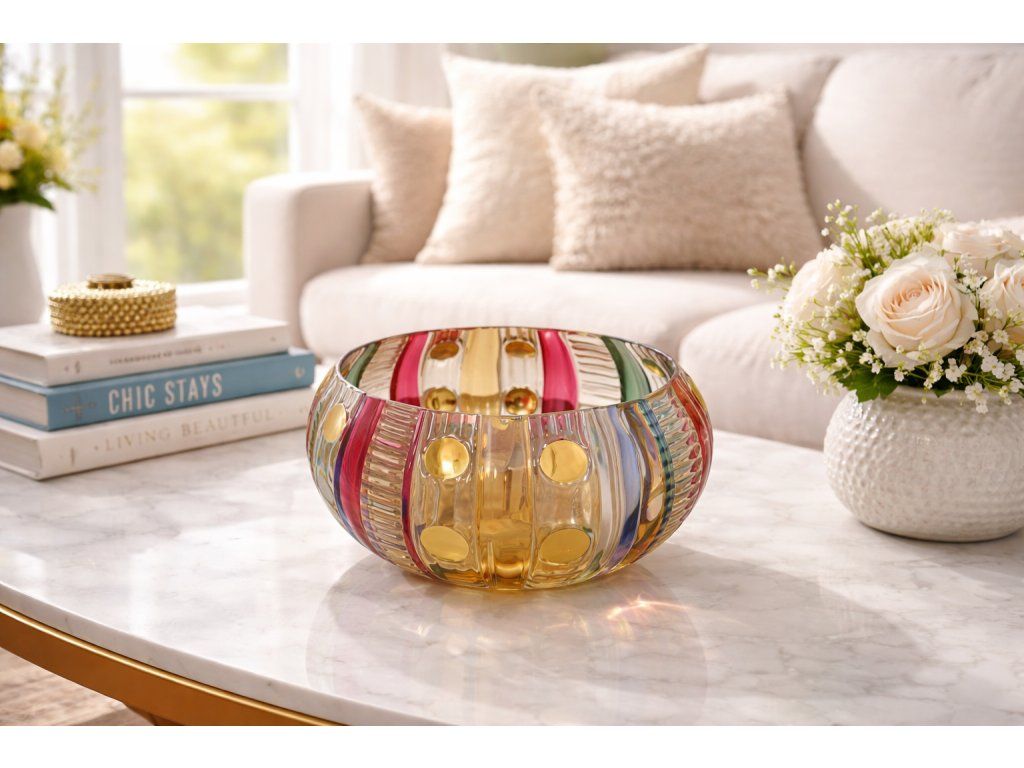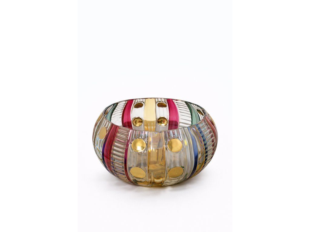 Krásná mísa z foukaného skla z kolekce NEMO z barevnými optickými čočkami. Autor návrhu Max Kannegiesser, Borské sklo, 60. léta 20. století. Výška 12 cm, průměr 23 cm. Top stav.
