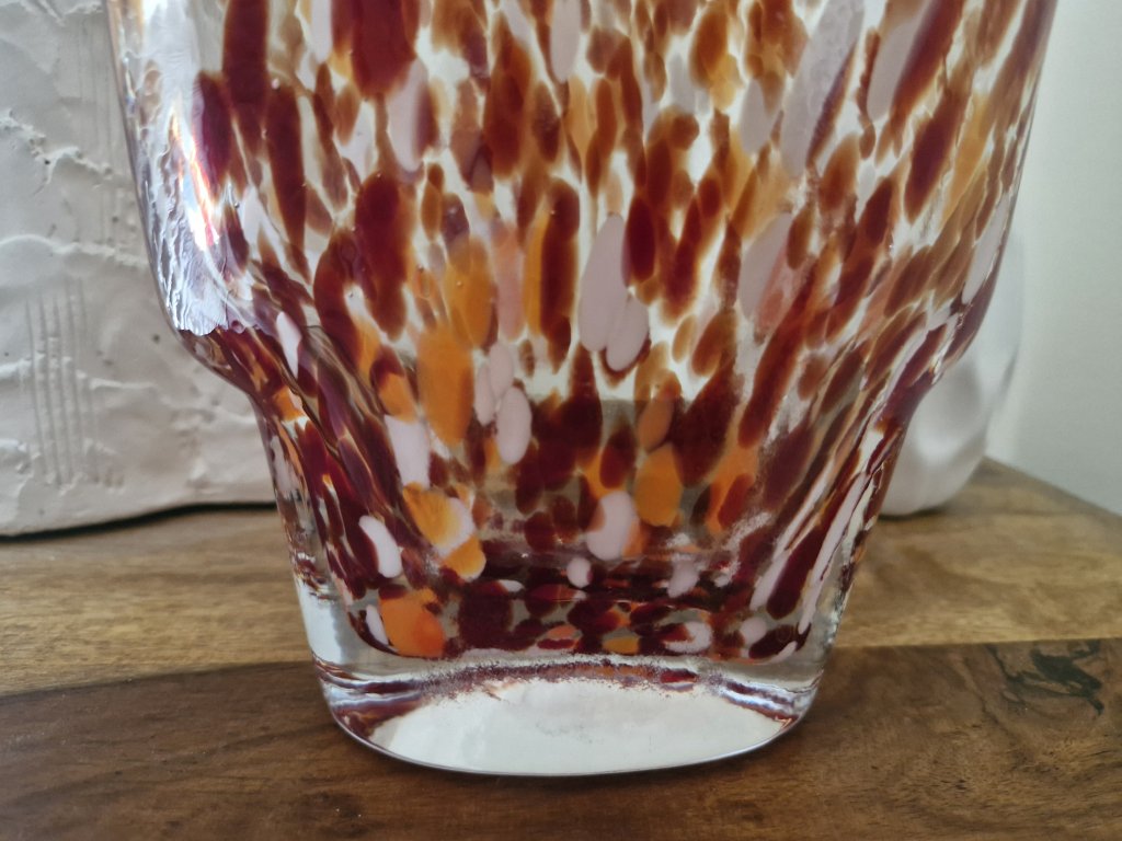 Luxusní MURANO váza z foukaného skla v krásné barevné kombinaci. Výška 26 cm, horná šířka 17 cm. Top stav.