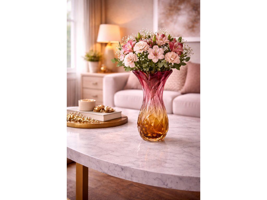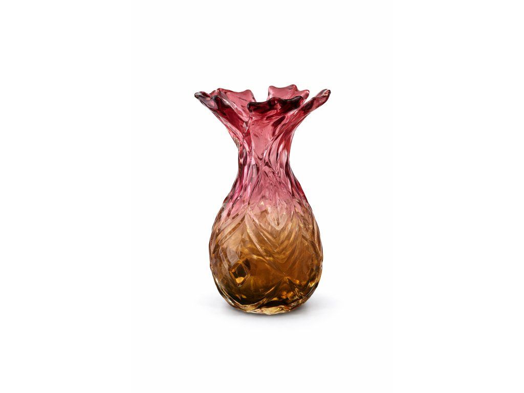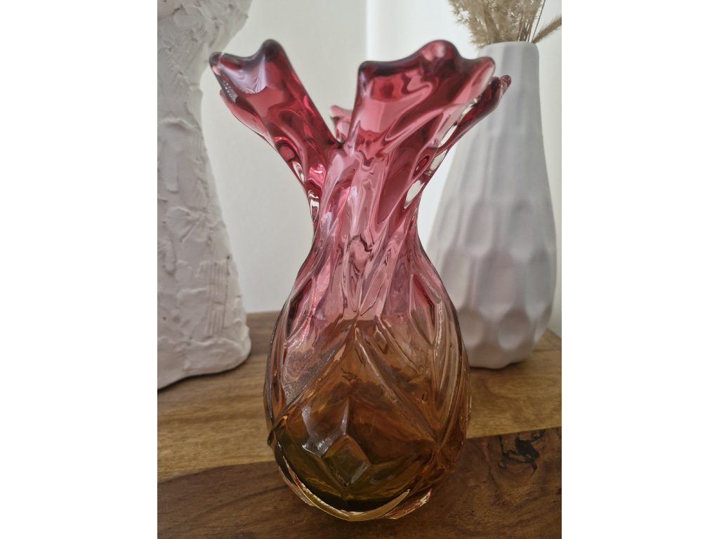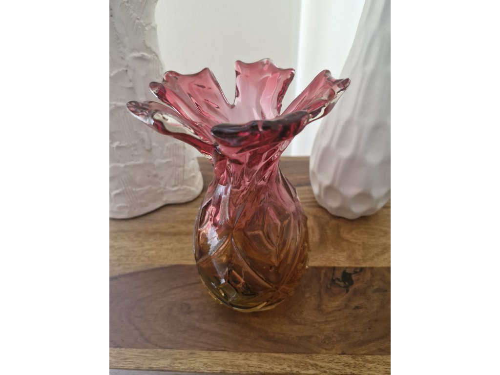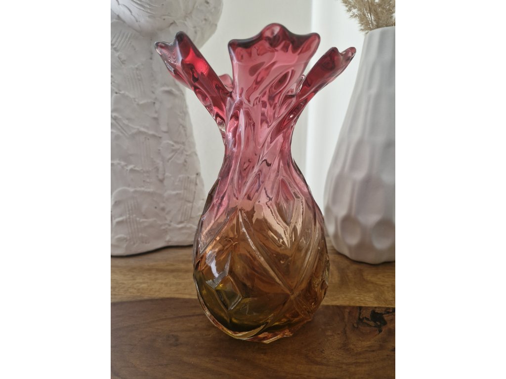 Nádherná váza z foukaného skla v krásné barevné kombinaci, kolekce ANANAS, autor návrhu František Koudelka, Borské sklo - Prácheň, r. 1970. Výška 20 cm. Top stav.