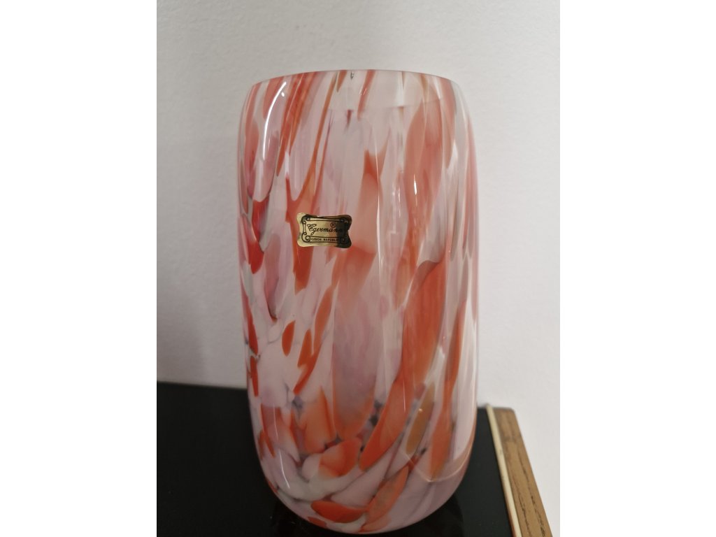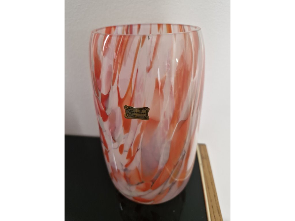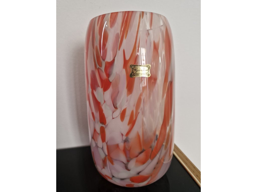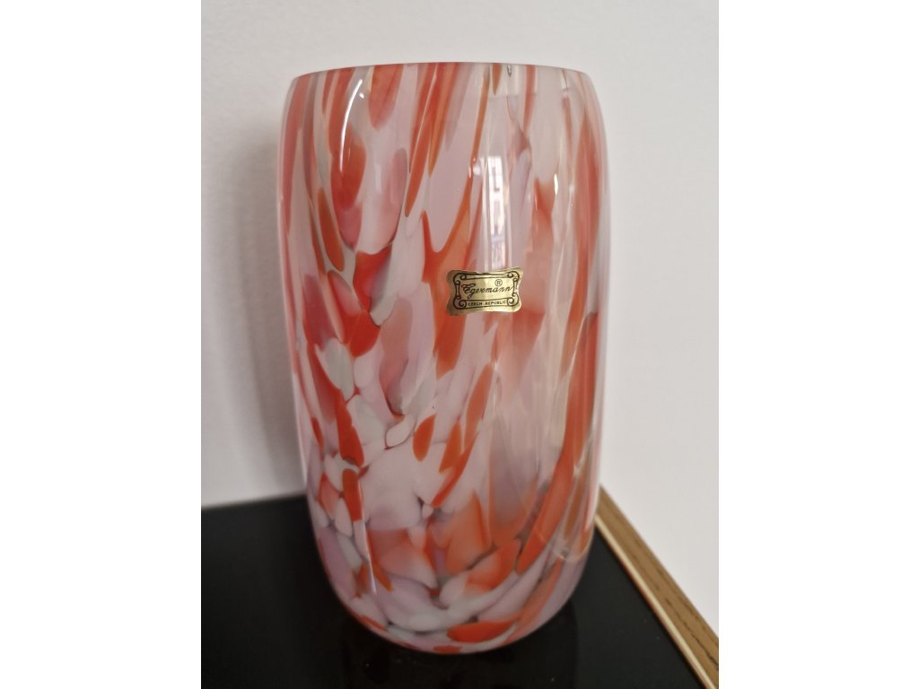 Nádherná váza z foukaného skla v krásné barevné kombinaci. Z produkce sklárny Egermann, Nový Bor, 90. léta 20. století. Výška 23,5 cm. S původní nálepkou sklárny. Top stav nového zboží.