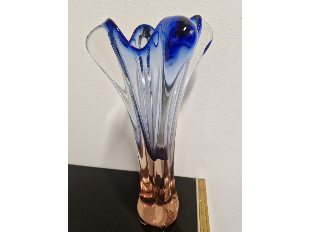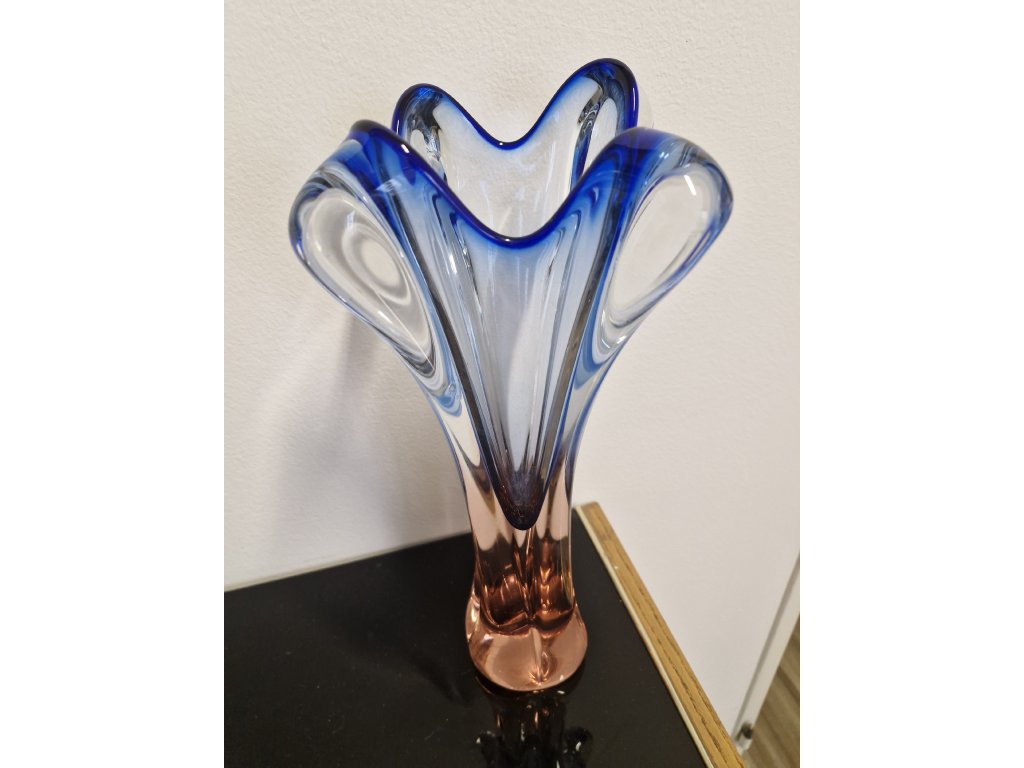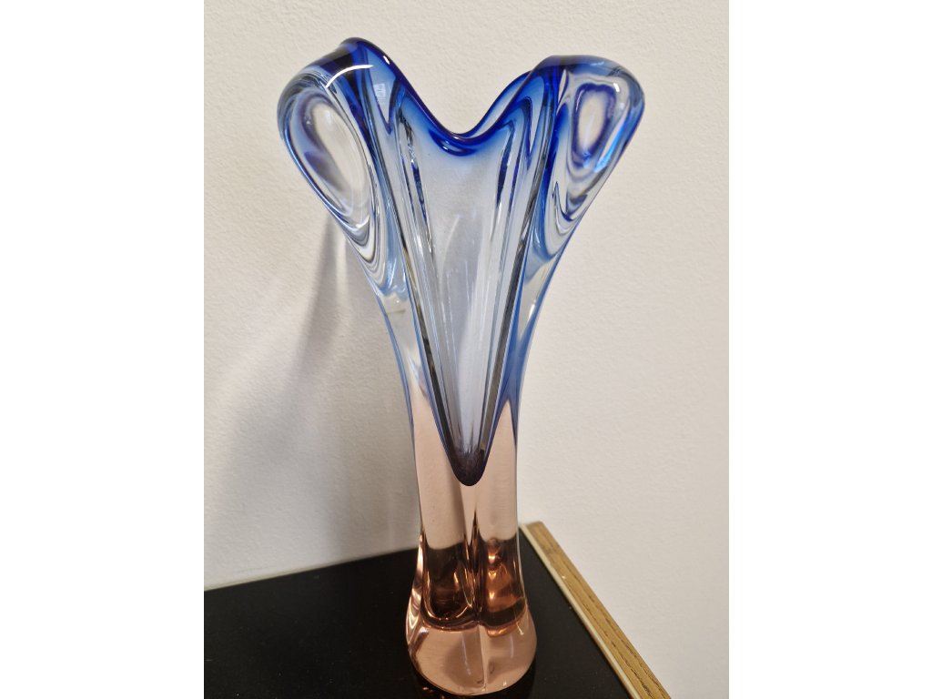 Krásná váza z hutního skla v nejvyšší variantě. Autor návrh Josef Hospodka, sklárna Chřibská, 60. léta 20. století. Výška 33 cm. Top stav.