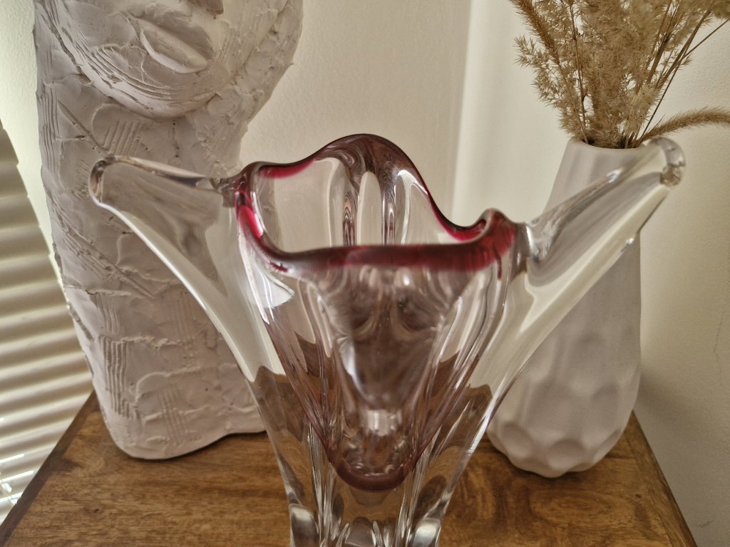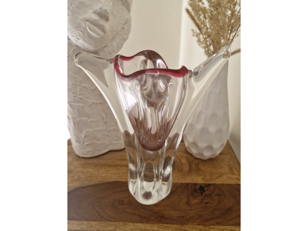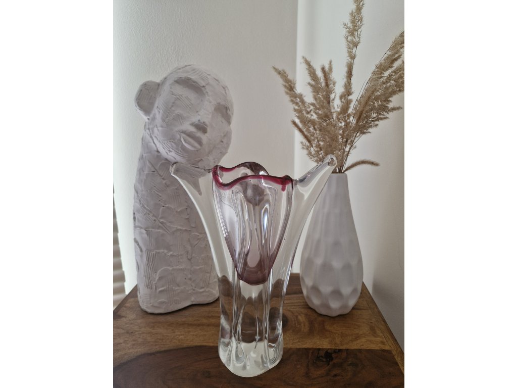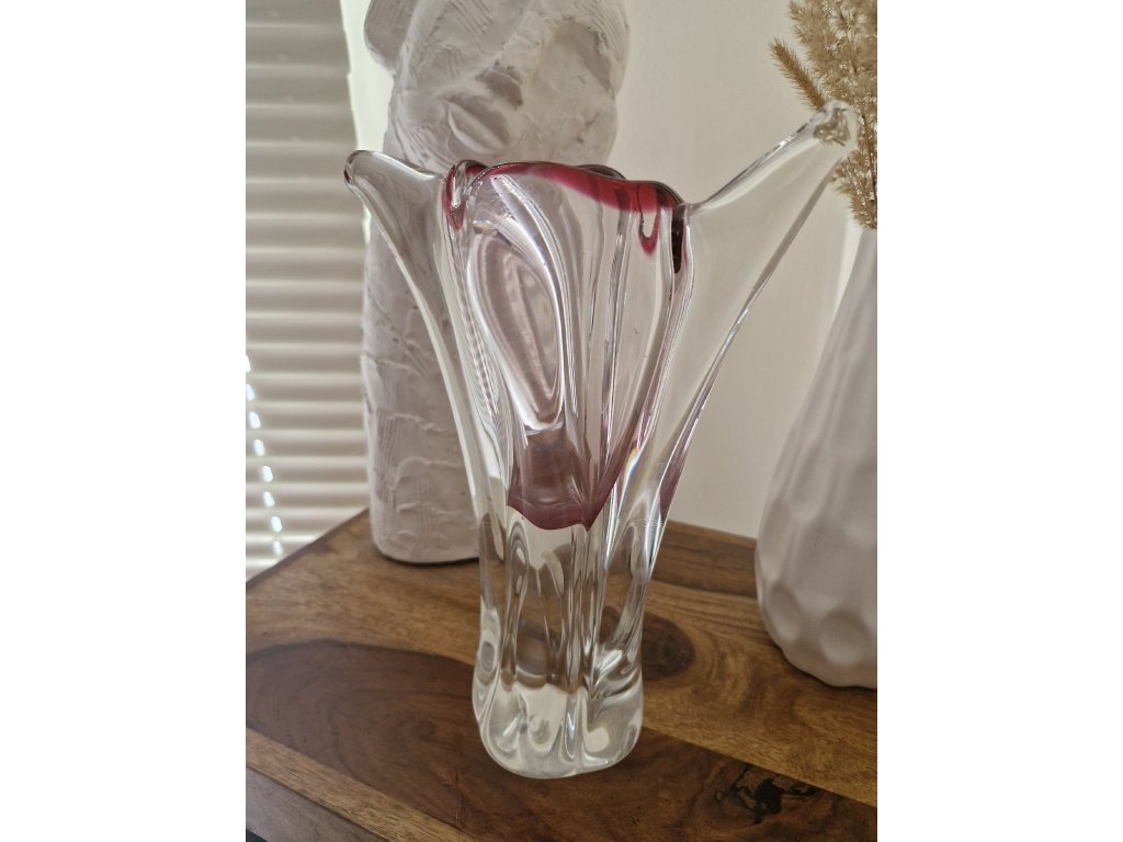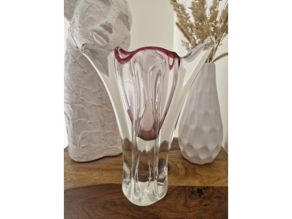 Nádherná, málo vídaná váza z hutního skla dle autorského návrhu Josefa Hospodky, sklárna Chřibská, 60. léta 20. století. Výška 27 cm. Top stav.
