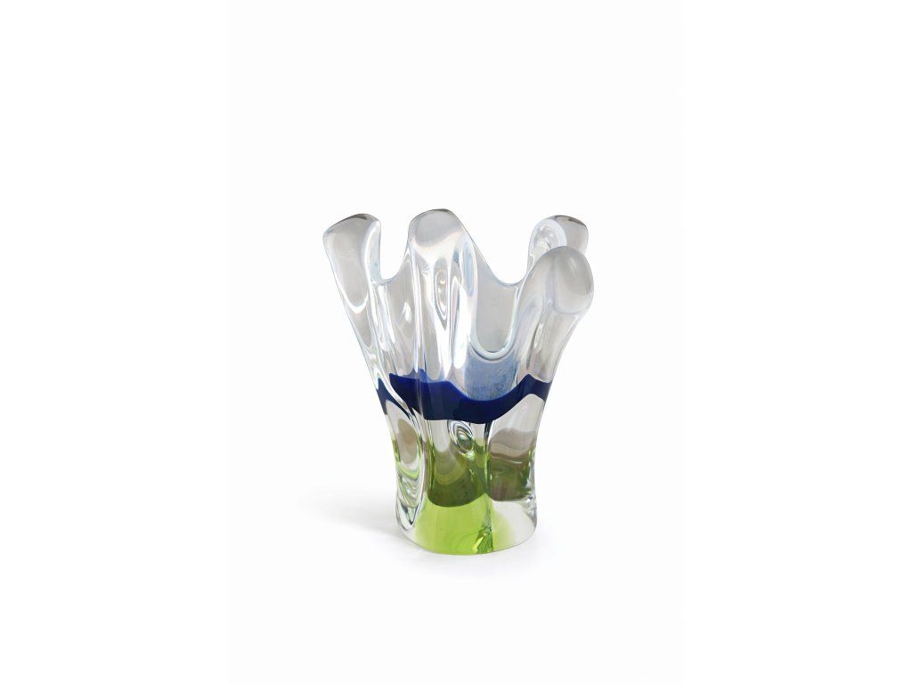 Nádherná váza z hutního skla (původně navržena jako mísa na cukríky) v krásné barevné kombinaci. Autor návrhu Josef Hospodka, sklárna Chřibská, 60. léta 20. století. Výška 17 cm. Top stav.