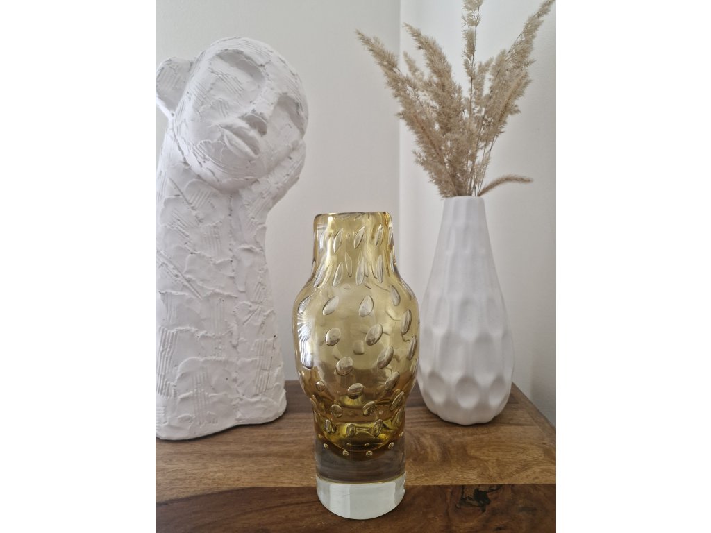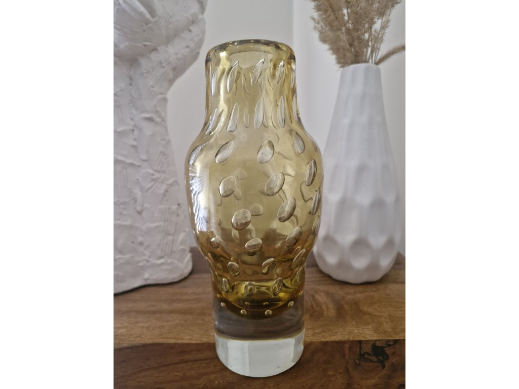 Nádherná váza z hutního skla s dekorem řízených bublin. Autor návrhu Milan Metelák, sklárna Harrachov, r. 1962. Výška 22 cm. Top stav.