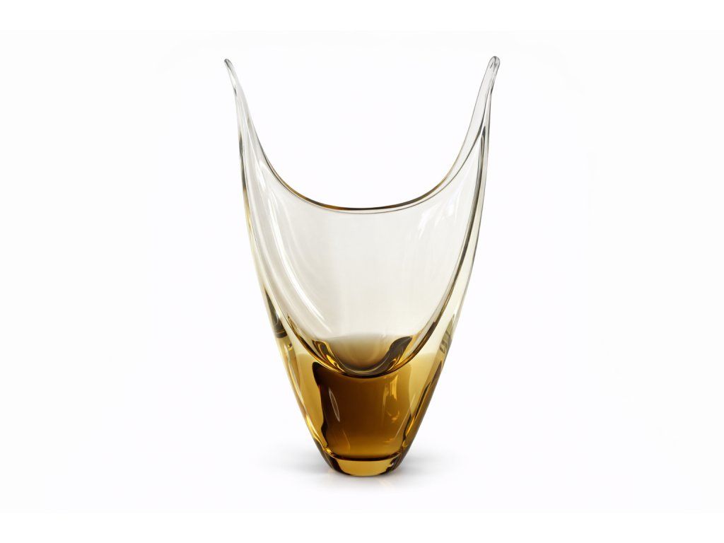 Nádherná váza z hutního skla v hnědo-žluté barevné kombinaci dle autorského návrhu Miloslava Klingera, sklárna ŽBS, 60. léta 20. století. Výška 21 cm. Top stav.