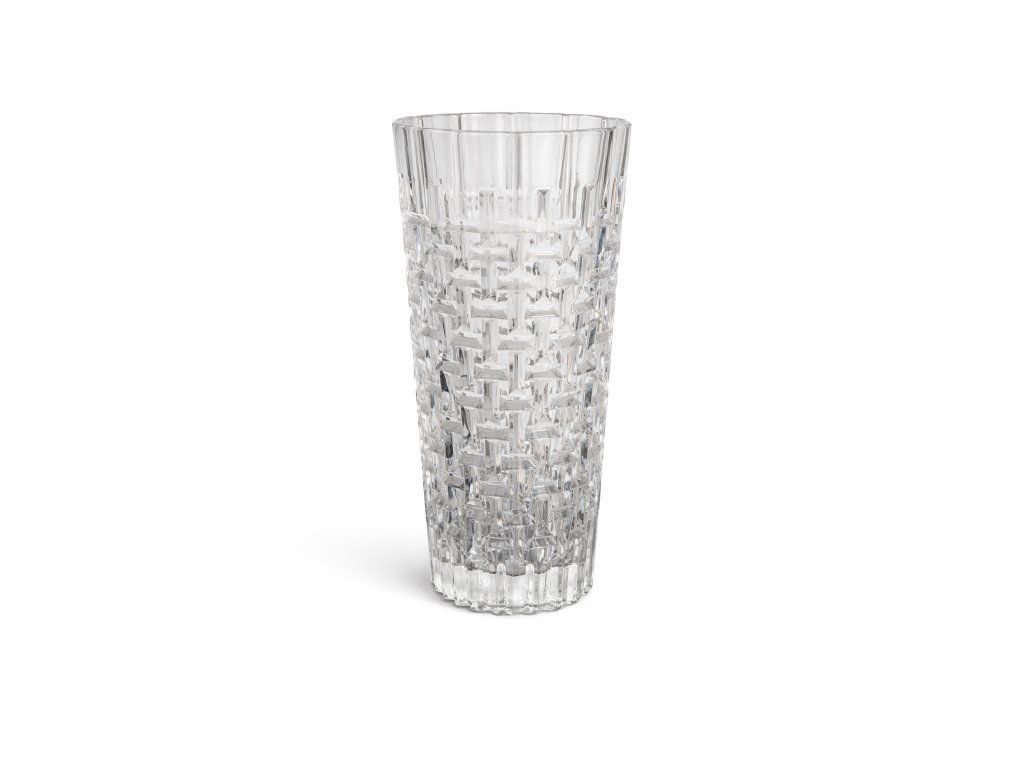 Nádherná váza z lisovaného křišťálové skla (tzv. olovolis) dle autorského návrhu Jiřího Řepáska, Poděbradské sklárny, r. 1976. Výška 26 cm. 100% TOP stav.