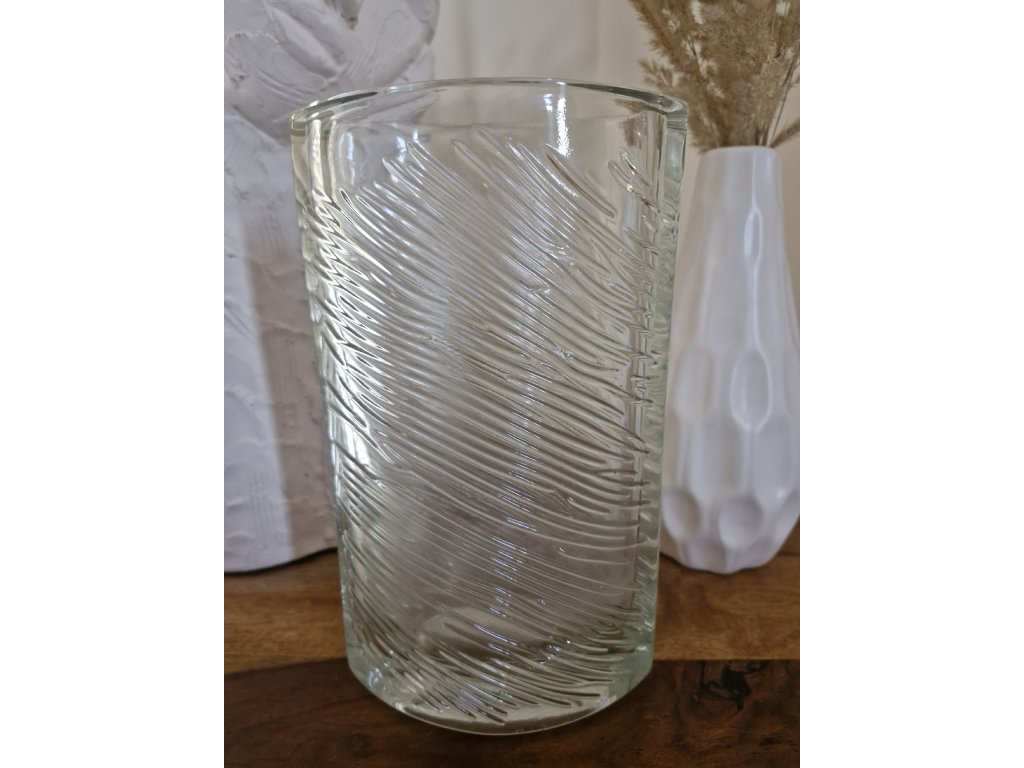 Nádherná masivní váza z lisovaného skla dle autorského návrhu Františka Víznera, sklárna Libochovice, r. 1971. Výška 23 cm. Top stav, pouze na hraně podstavy mikro (téměř neviditelný) oťuk.