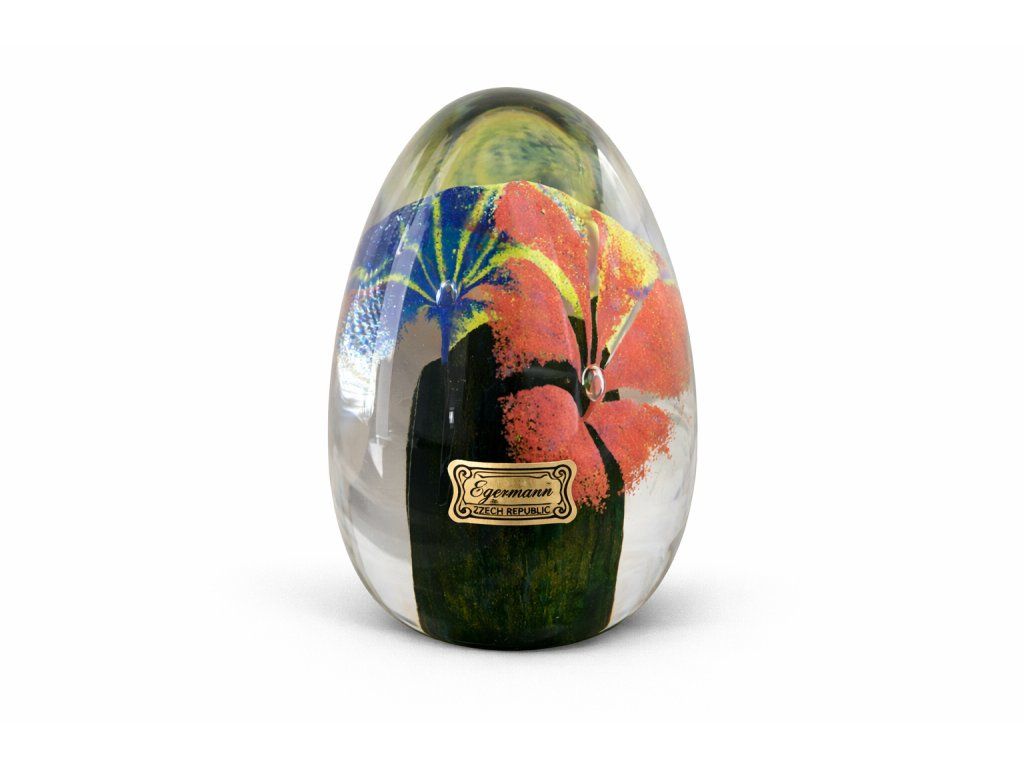 Krásné těžítko z hutního skla z produkce sklárny Egermann, Nový Bor, 90. léta 20. století. Výška 12 cm. S původní nálepkou sklárny, v originální krabičce. Top stav nového zboží.
