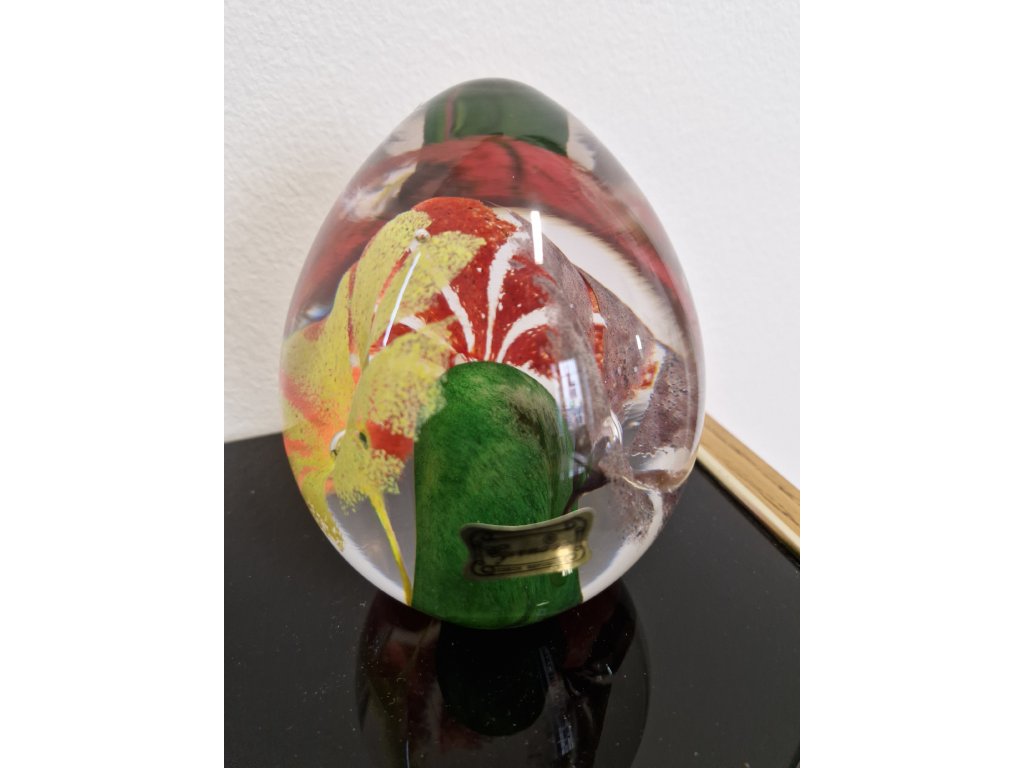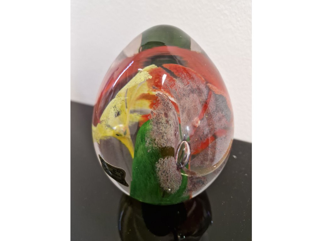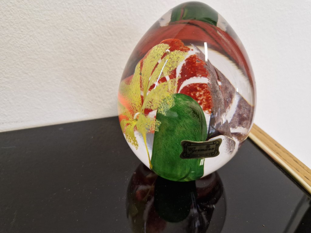 Krásné těžítko z hutního skla z produkce sklárny Egermann, Nový Bor, 90. léta 20. století. Výška 13 cm. S původní nálepkou sklárny, v originální krabičce. Top stav nového zboží.