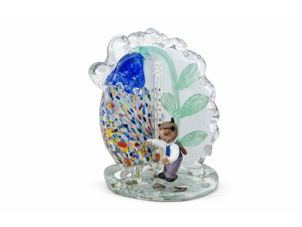 Sběratelský skvost, který se jen tak nevidí - skleněný teploměr dle původního návrhu Jaroslava Brychty, sklárna ŽBS. S motivem svatojánskeho broučka z večerníčkových pohádek Broučci. Výška 16 cm, šířka v nejširší části 15 cm. 100% TOP luxusní sběratelský stav. Na podstavě kompletní původní značení.