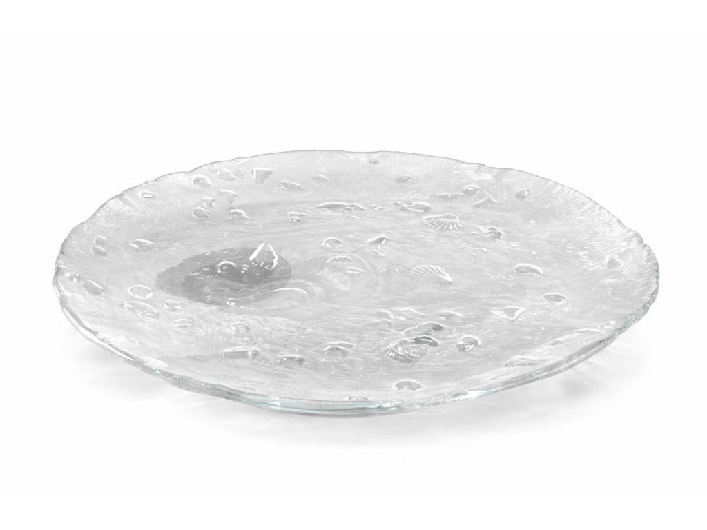 Parádní mísa z lisovaného skla s mořskými motivy dle autorského návrhu Jiřího Brabce, sklárna Rosice, r. 1976. Výška 4 cm, průměr 30 cm. 100% TOP stav.