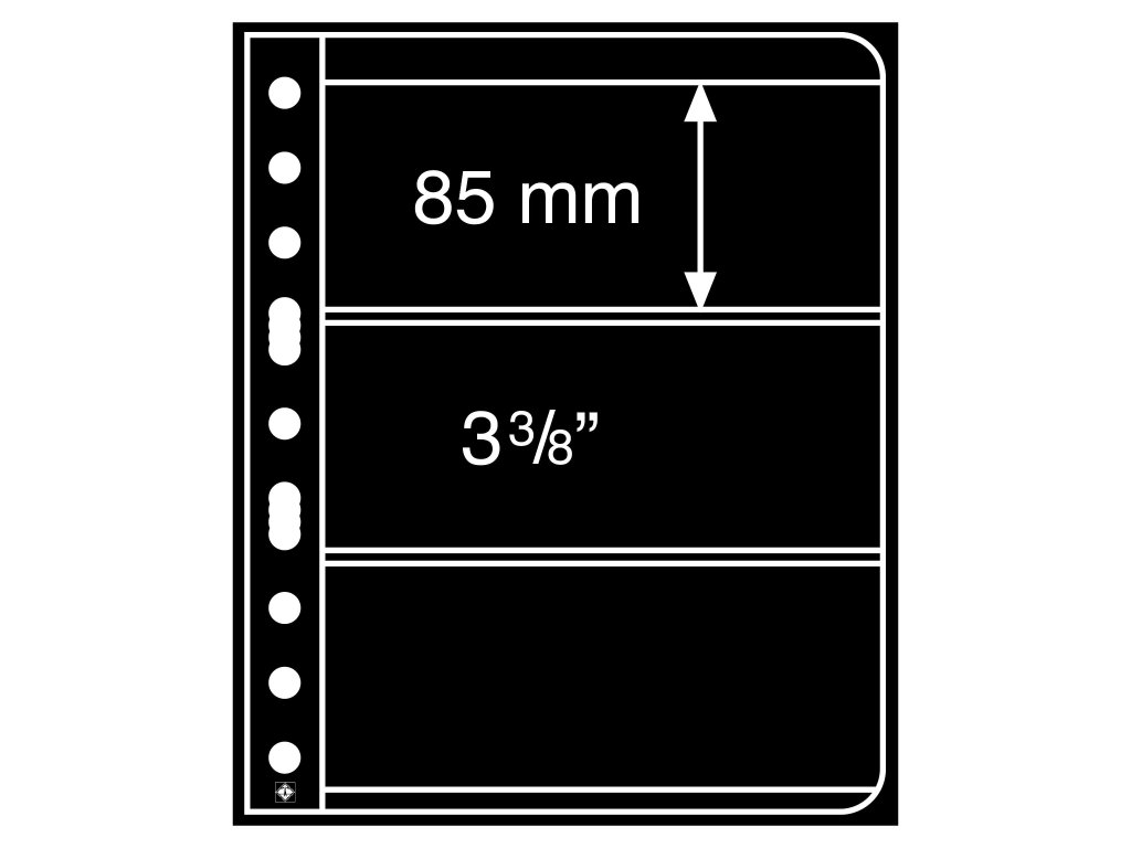 Černé plastové listy Vario 3S německé značky Leuchtturm se speciálním filmem neobsahují chemická změkčovadla a jsou kompatibilní se všemi kroužkovými úložnými systémy VARIO.