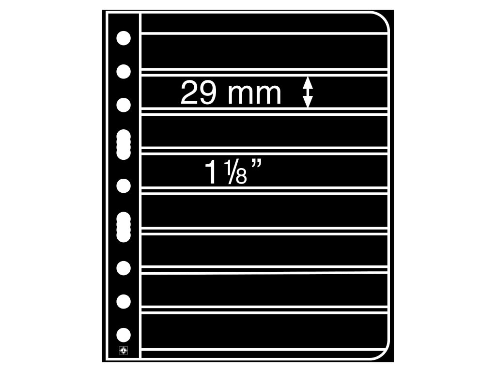 Černé plastové listy Vario 8S německé značky Leuchtturm se speciálním filmem neobsahují chemická změkčovadla a jsou kompatibilní se všemi kroužkovými úložnými systémy VARIO.