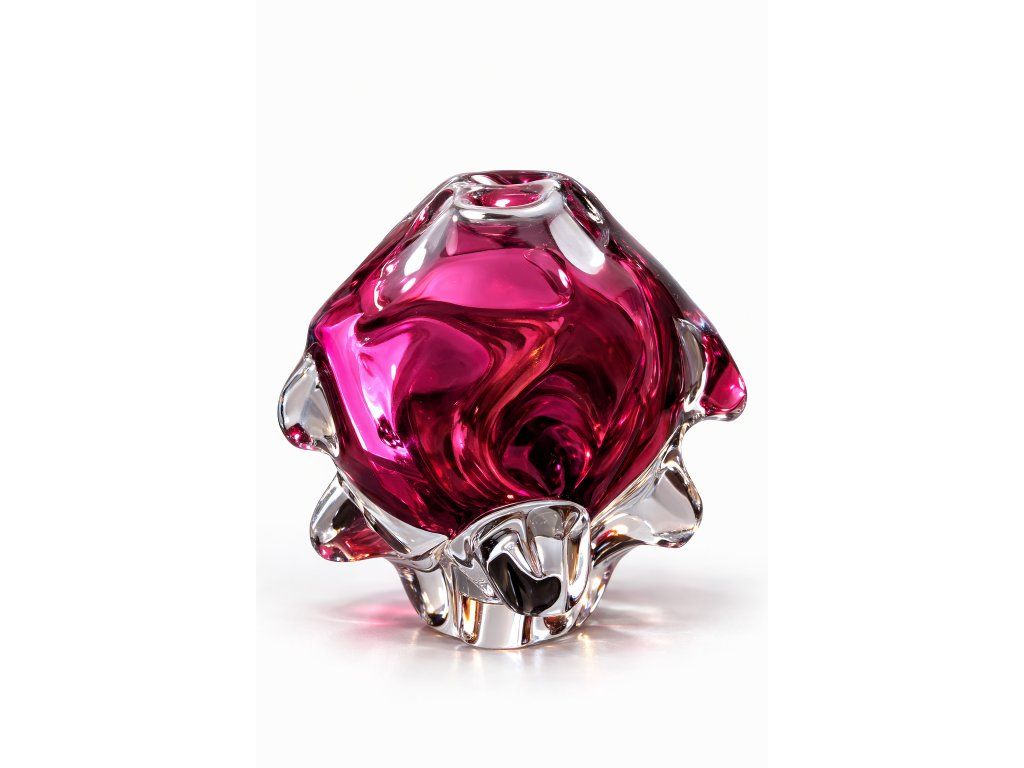 Krásný, hodně málo se vyskytující svícen z hutního skla v růžovo oranžové barevné kombinaci. Autor návrhu Josef Hospodka, sklárna Chřibská, 60. léta 20. století. Výška 12 cm, průměr 16 cm. Top stav.