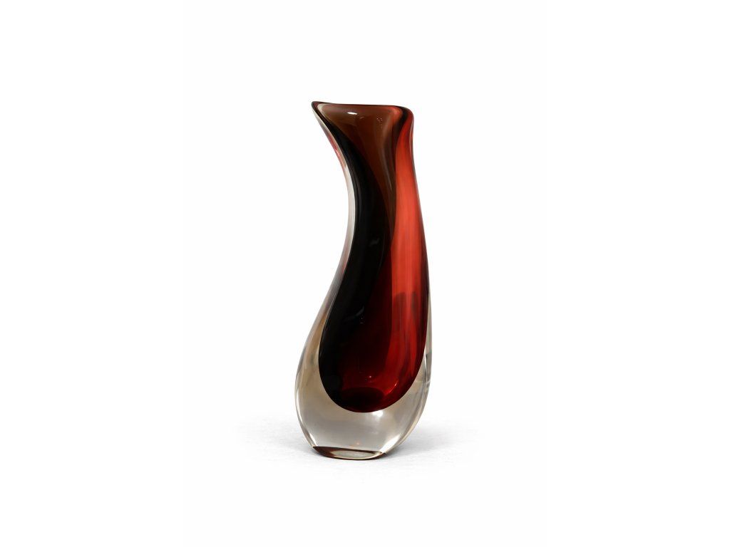 Nádherná asymetrická váza ze vzácné rubínové skloviny z produkce sklárny Art Glass PRINC, Žďár nad Sázavou. Výška 28 cm. 100% TOP stav.