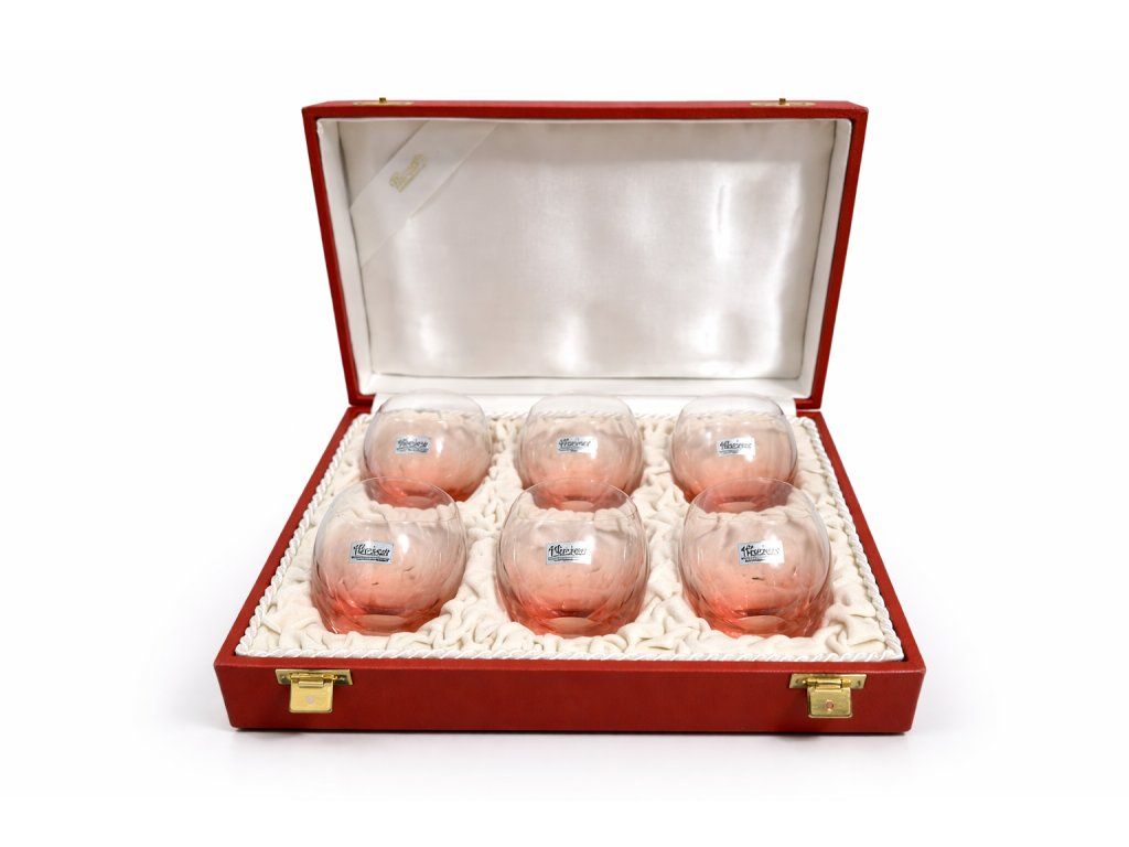Nápojová kolekce Culbuto tvarově vypovídá o době, kdy vznikla. V třicátých letech, za vrcholného funkcionalismu, dala touha po co nejprostších tvarech vzniknout této nadčasové kolekci. Minimalistický design kulatých sklenic však klade maximální nároky na provedení. A tak skláři Moser vnášejí do hry své zkušenosti a um, aby precizně vyfoukali tvar, jak ho geniální designér Rudolf Eschler roce 1935 navrhl. Všechny skleničky jsou značené, v top stavu. Kazeta bez poškození.