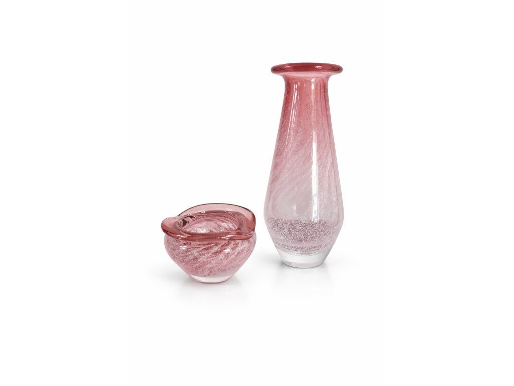 Krásná sada z hutního skla sestávající z vázy a misky - autorský návrh Ladislav Paleček, sklárna Škrdlovice, r. 1983. Váza výška 23 cm, miska výška 8 cm, průměr 12 cm. Oba kousky jsou v top sběratelském stavu. Jedná se o málo vídaný tvar.