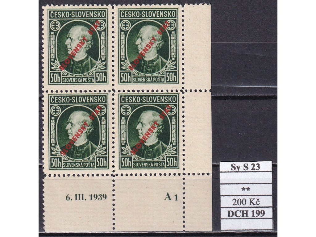 Slovenský štát Sy S 23 krajový čtyřblok svěží
