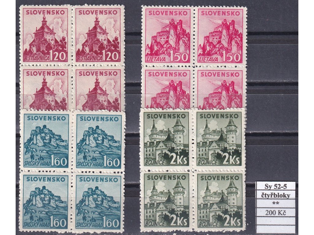 Slovenský štát Sy 52-5 čtyřbloky svěží