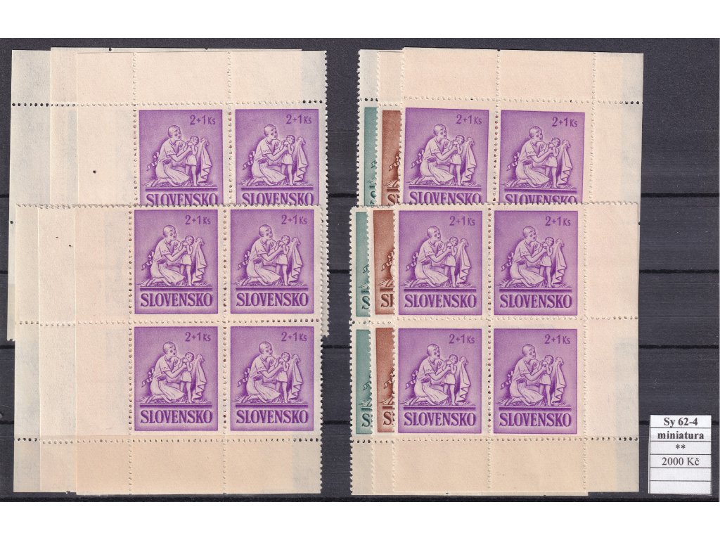Slovenský stát Sy 62-4 miniatura svěží. Sy 62 miniatura P4, Sy 63 miniatura P3, Sy 64 miniatura P3.
