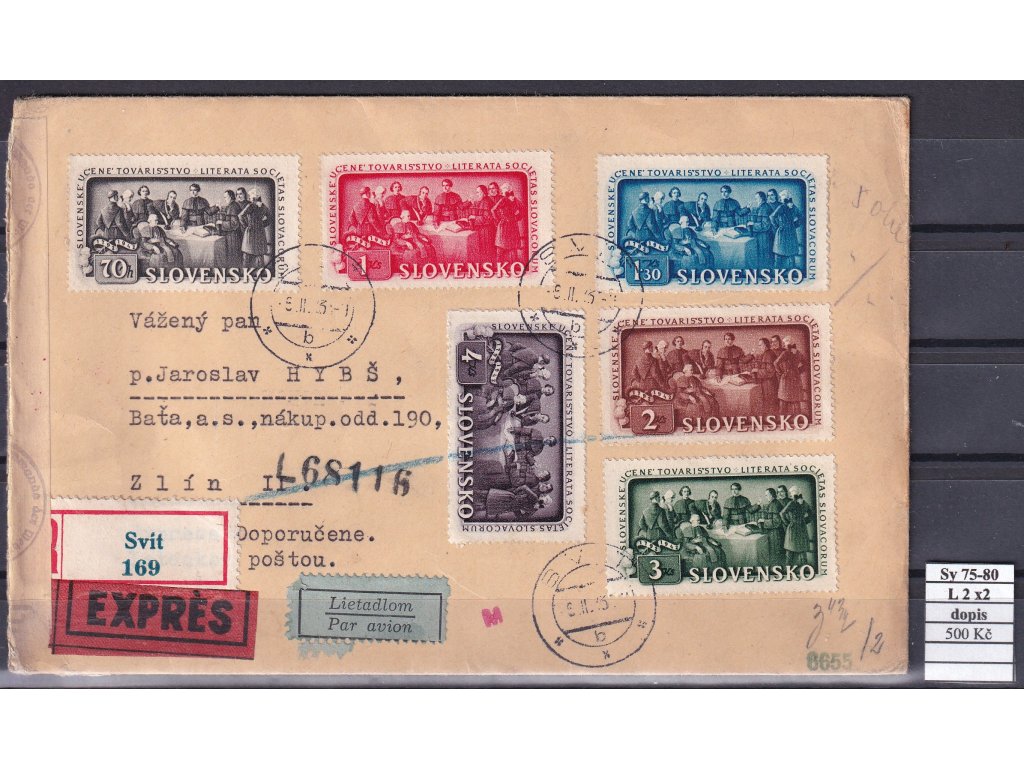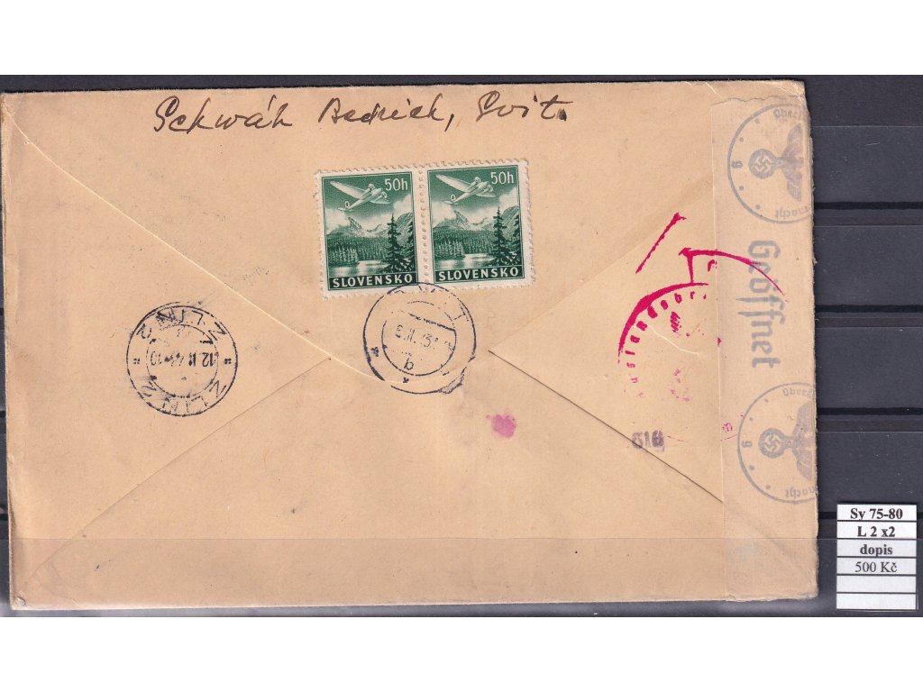 Slovenský stát Sy 75-80 + 2x L2 na dopise