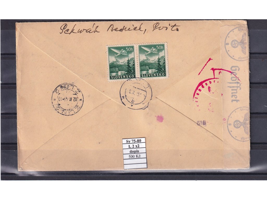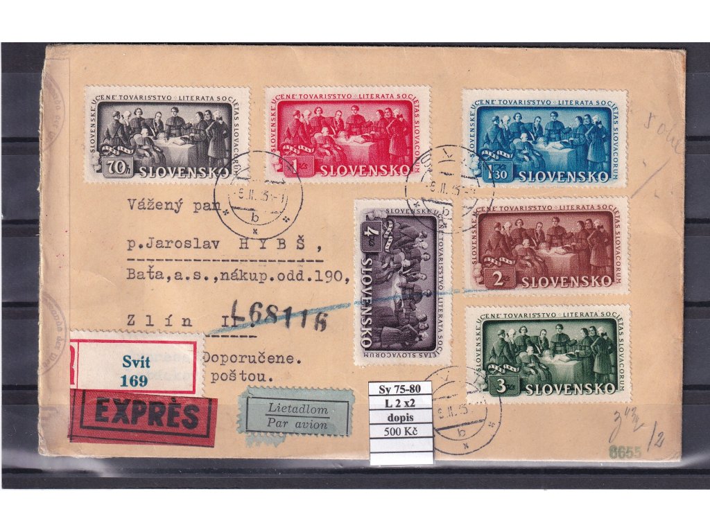 Slovenský štát Sy 75-80 a L2 x 2 na dopise