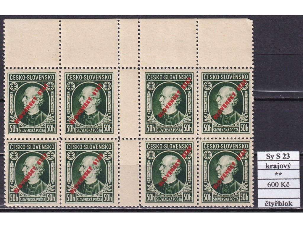 Slovenský štát Sy S 23 čtyřblok svěží