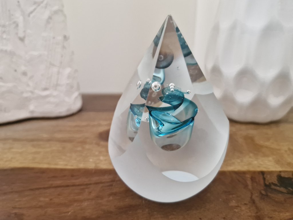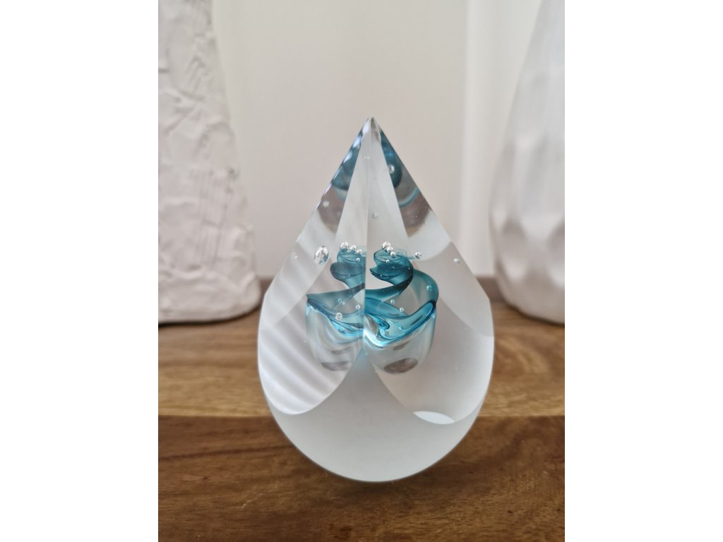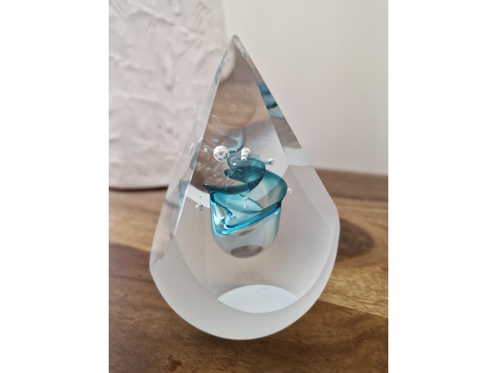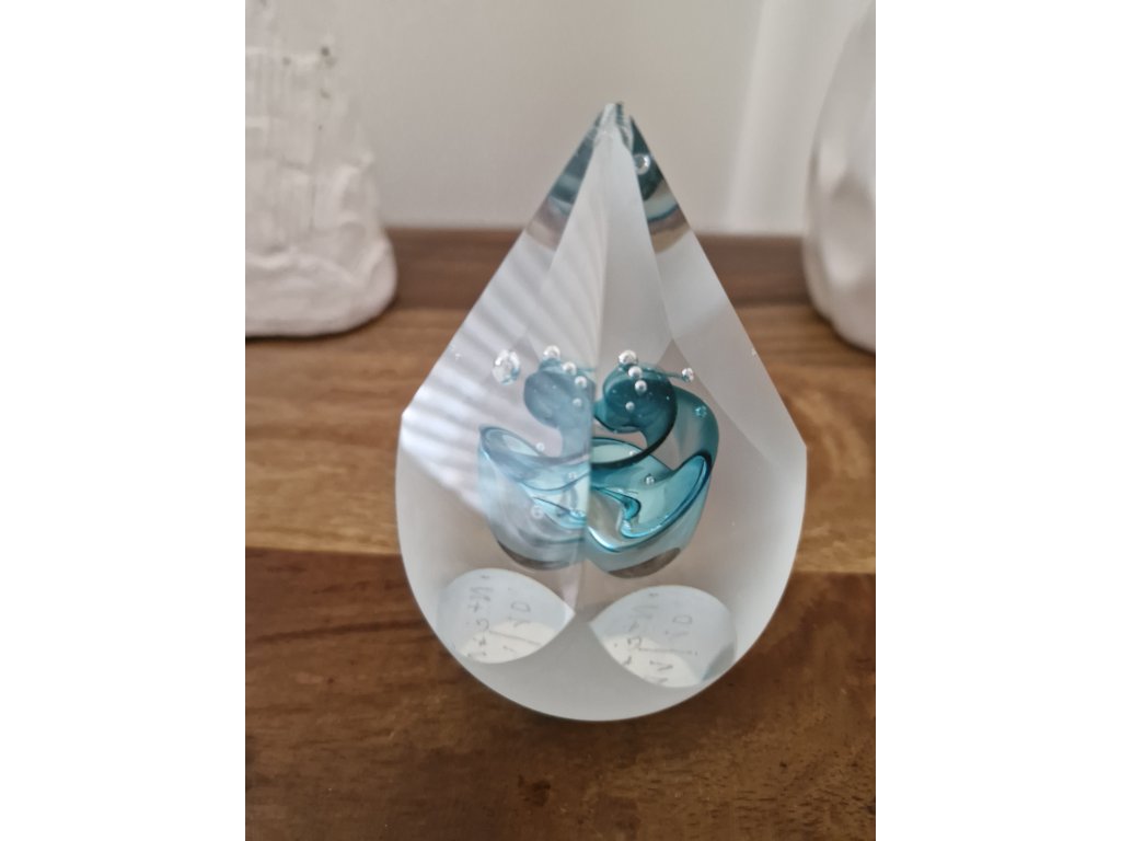 Krásné skleněné těžítko broušené na 4 hrany s leptanou spodní částí dle autorského návrhu Aleše Vlanera, sklárna ARt Glass PRINC, Žďár nad Sázavou. Výška 11 cm. Top stav.