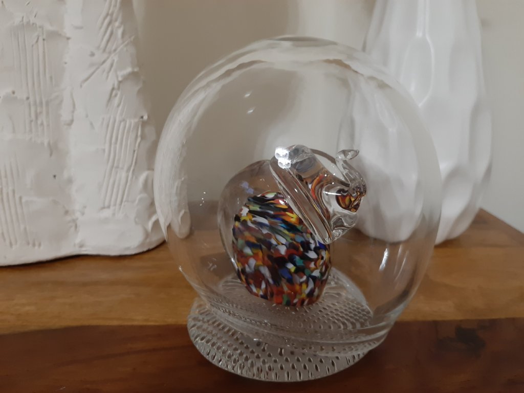 Krásné velké těžítko z hutního skla s uvězněným slonem :) Z produkce sklárny PRINC, Žďár nad Sázavou. Výška 15 cm, průměr /šířka 13 cm. 100% TOP stav.