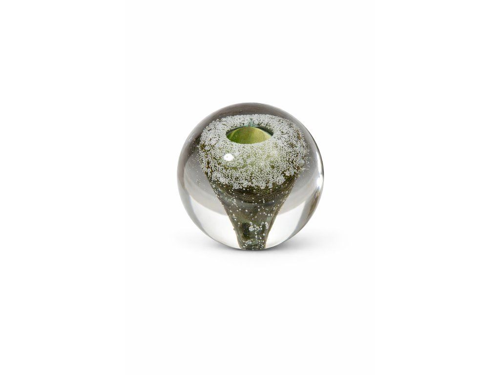 Parádní masivní těžítko z hutního skla. Výška 10 cm, váha cca 3350 g. Ve tmě ty bílé částečky svítí neonově. Každý kus je originál. Z produkce Atelieru Beránek.