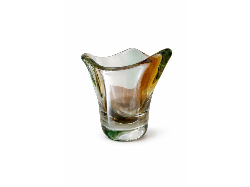 Nádherná váza z hutního skla v málo vídané variantě, kolekce RHAPSODY, autorský návrh František Zemek, sklárna Mstišov, r. 1958. Výška 15 cm. 100% TOP stav.