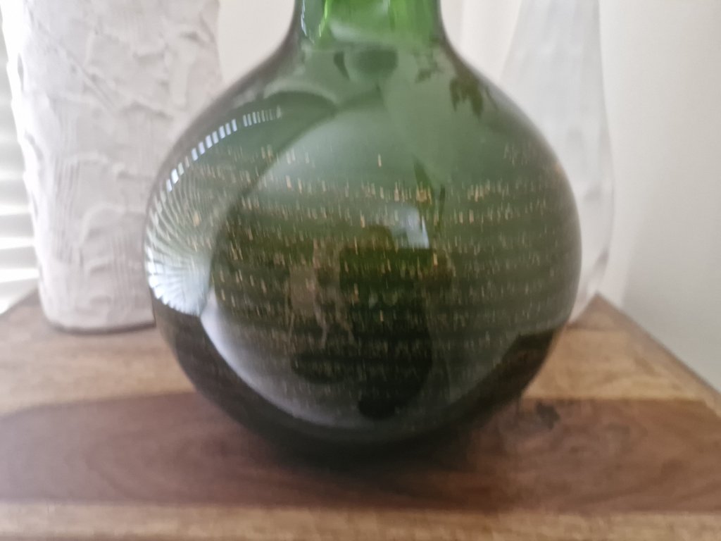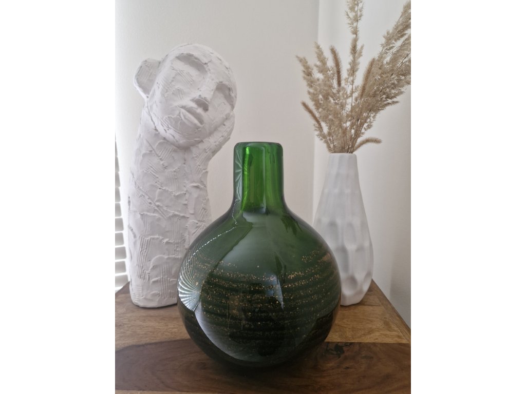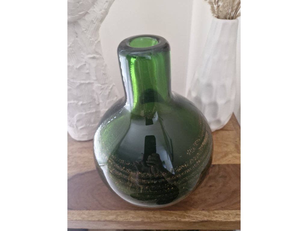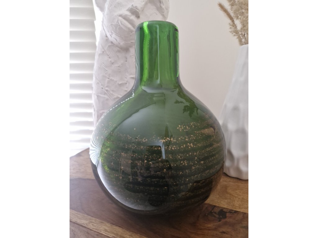Váza z hutního skla v zelené barvě se spirálovou zataveninou. Autorský návrh František Vízner, sklárna Škrdlovice, r. 1976. Výška 26 cm. Top stav.