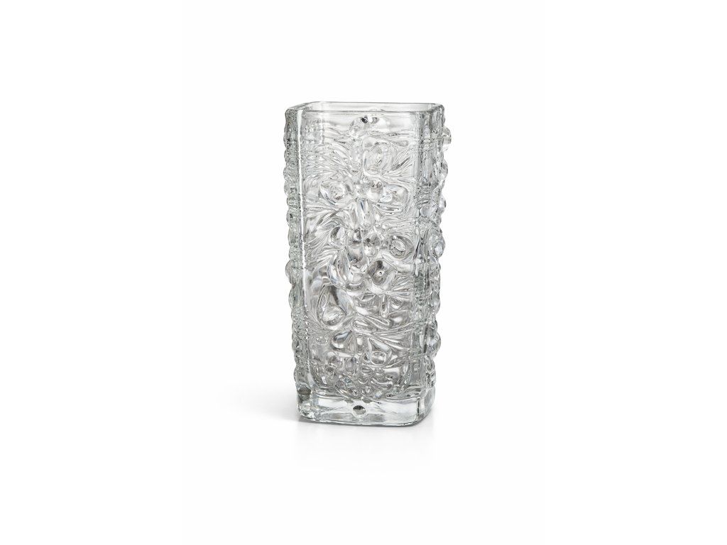Váza z lisovaného skla, autorský návrh František Pečený, sklárna Heřmanova huť, r. 1968. Výška 19 cm. 100% TOP stav.