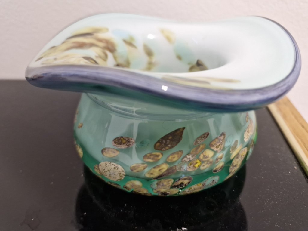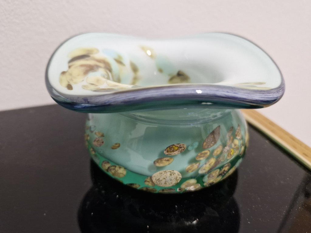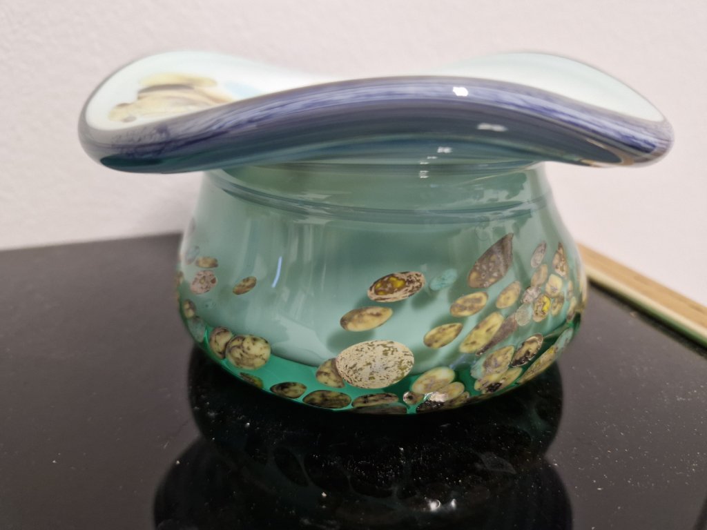 Luxusní, hodně málo vídaná miska z hutního skla se zataveninou dle autorského návrhu Rudolfa Višňovského, realizace Karel Vogl, sklárna ŽBS. Výška 7 cm, průměr 13 cm. Top sběratelský stav.