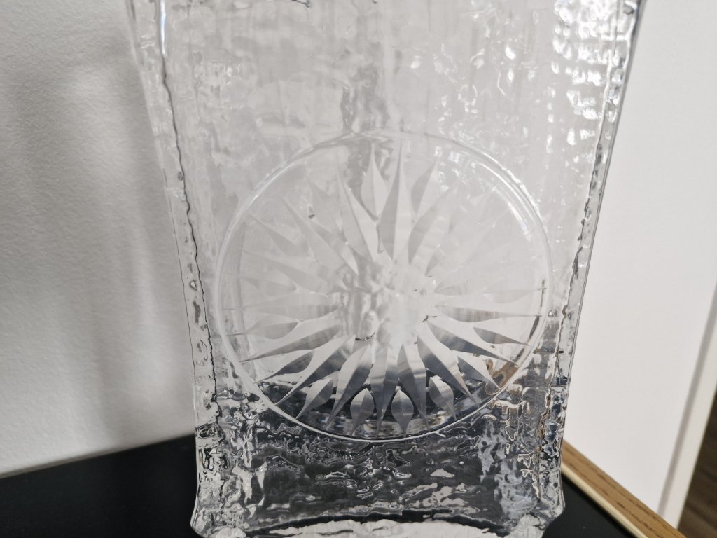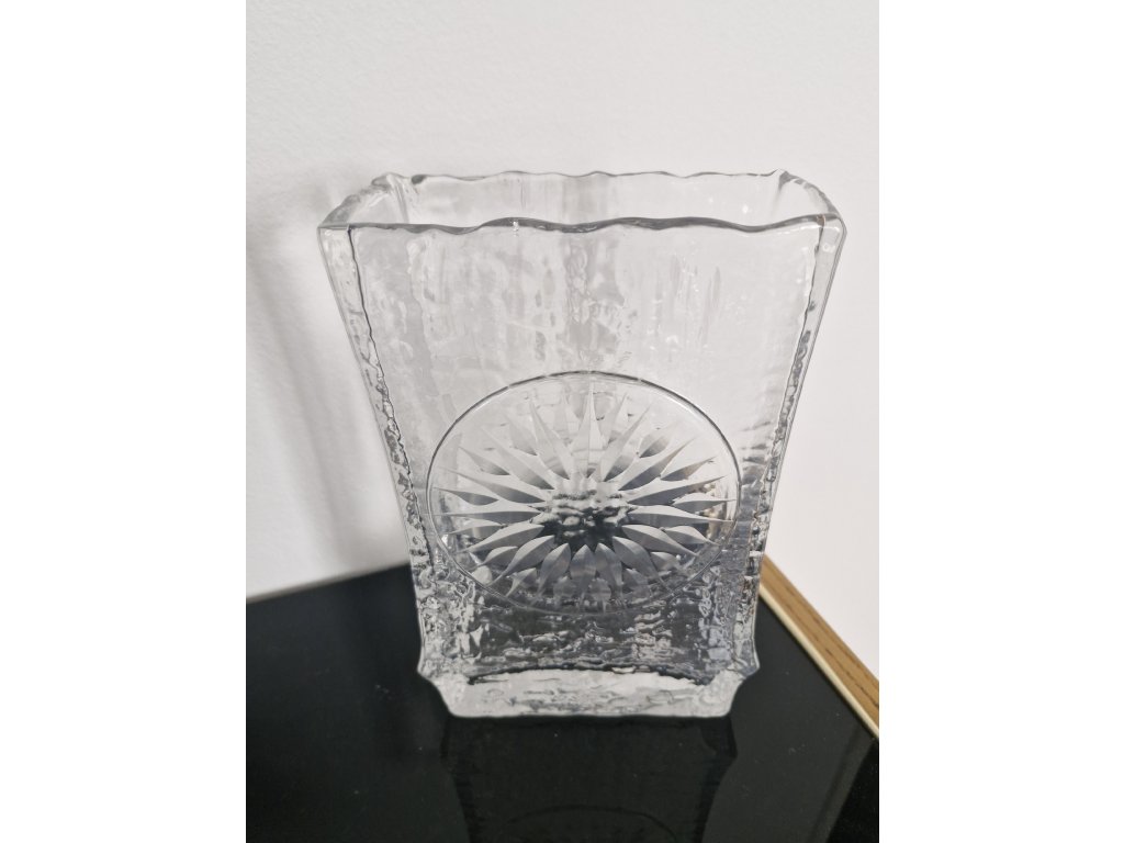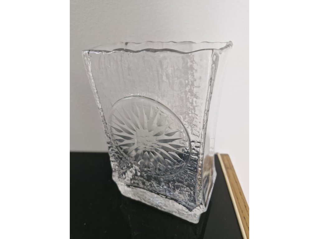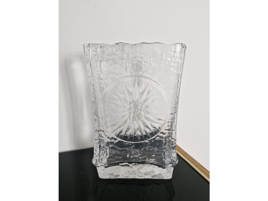 Vzácná sběratelská váza z foukaného skla s rytinou z kolekce RUSTIKAL, autorský návrh Jan Gabrhel, Chlum u Třeboně, 70. léta 20. století. Výška 21 cm. Top sběratelský stav.