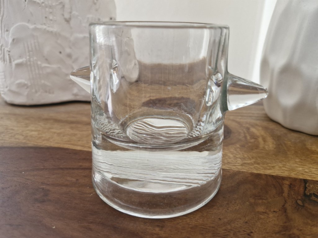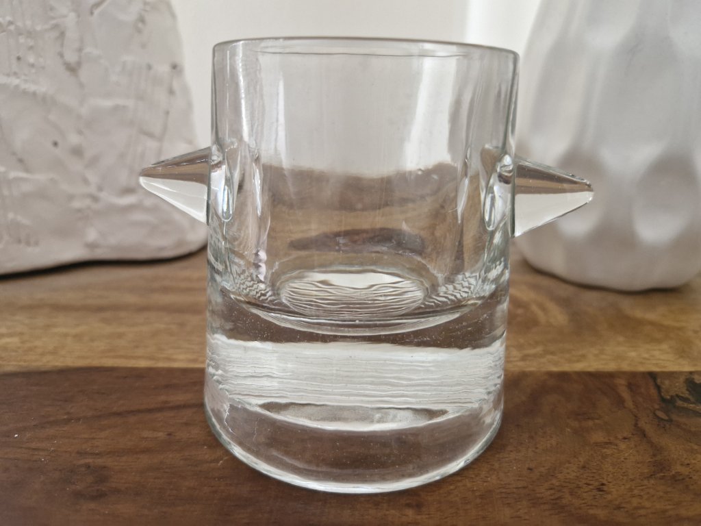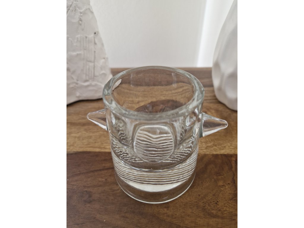 Vzácná, málo vídaná váza z lisovaného skla v črém provedení. Krásný, masivní kousek. Autorský návrh Adolf Matura, Sklo Union, 60. léta 20. století. Výška 10 cm. Top sběratelský stav.