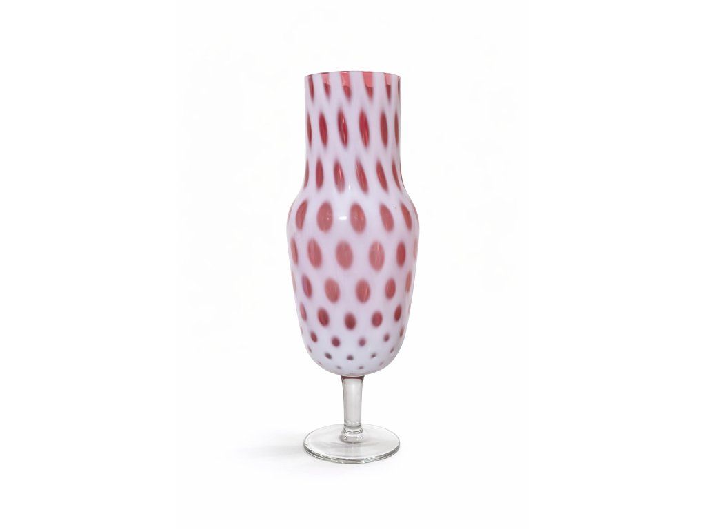 Vzácná váza z přejímaného rubínového skla z kolekce FLORET. Autor návrhu Milan Metelák, sklárna Harrachov, r. 1967. Výška 33 cm. Top sběratelský stav.