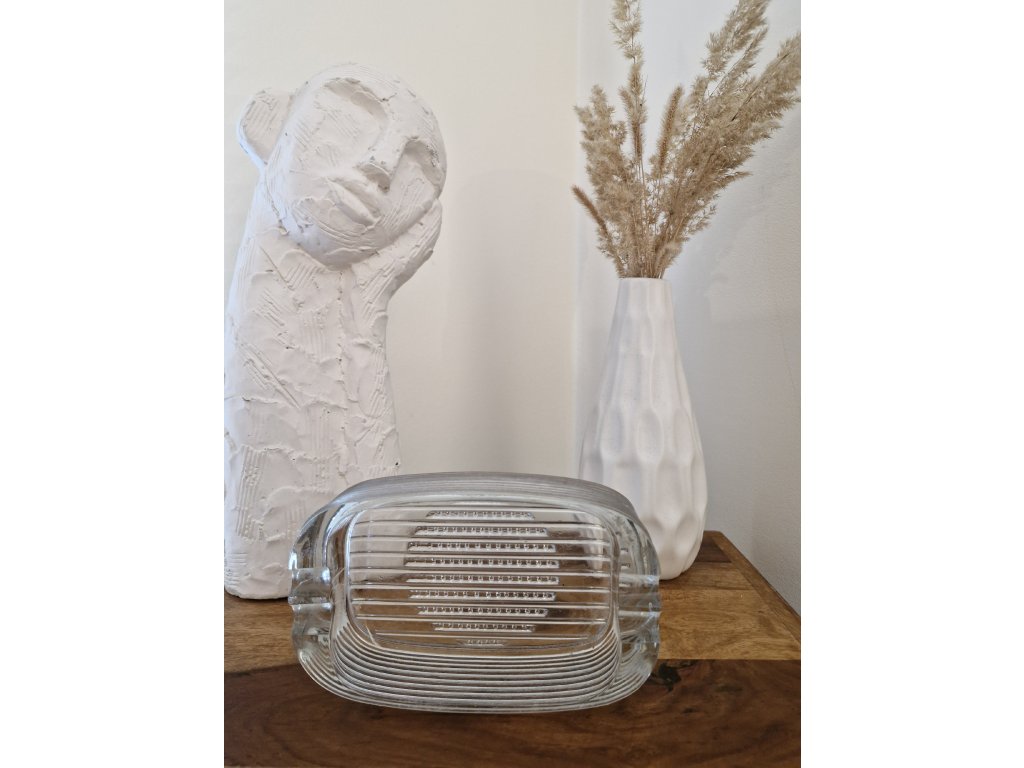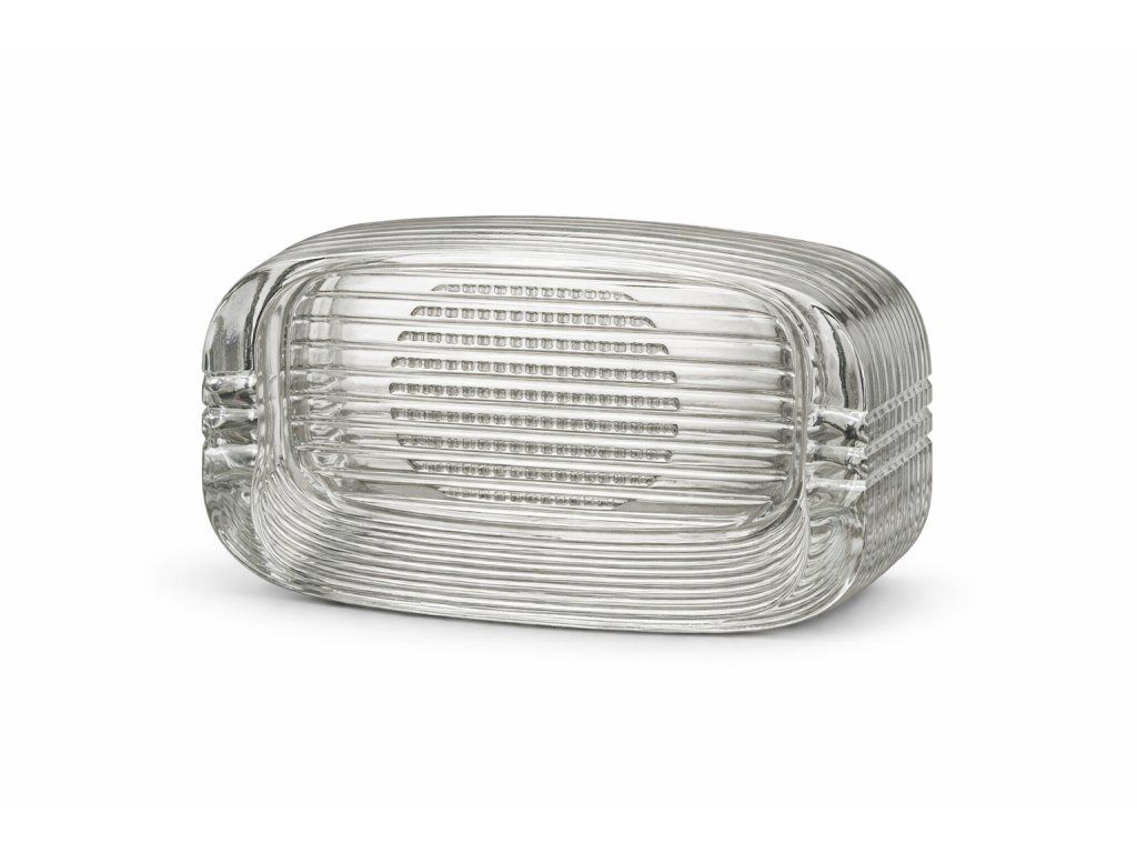 Vzácný popelník z lisovaného skla dle autorského návrhu Adolfa Matury, sklárna Libochovice, r. 1976. Na II. mezinárodní výstavě skla a porcelánu v Jablonci nad Nisou v r. 1976 získala táto kolekce zlatou medaili v kategorii lisovaného skla. Rozměry: výška 5 cm, podstava 19x12 cm. Top stav.