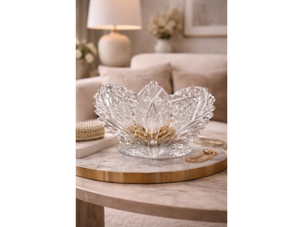 Nádherná luxusní žardiniéra z broušeného křišťálového skla. Náročný, detailní brus. Z produkce Bohemia Crystal. Výška 11 cm, délka 26 cm. Top stav.